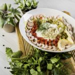 (krevetid, jääkapsas, paprika, hapukurk,till, küüslaugukaste)
